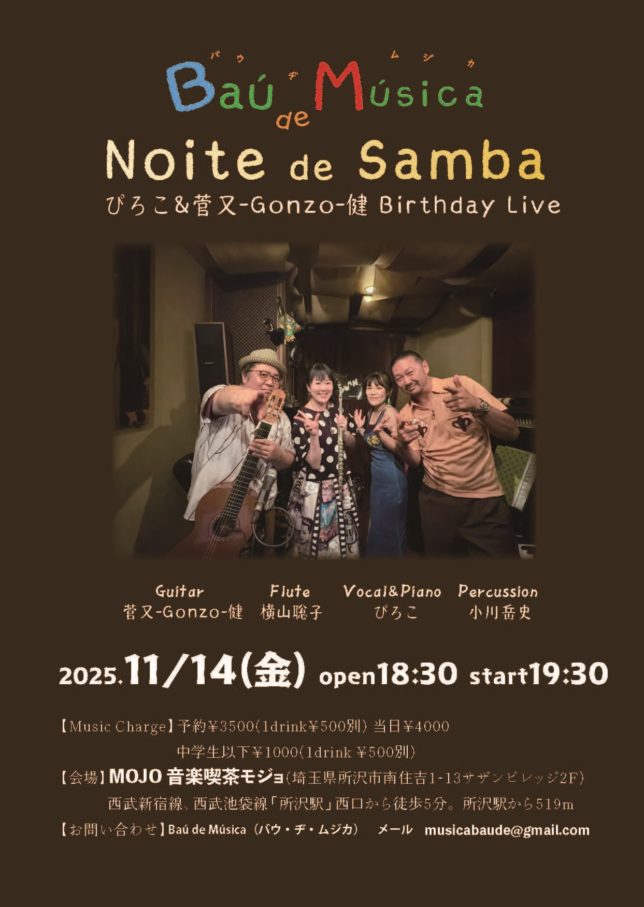 ブラジル音楽を中心に演奏する、Bau de Musicaライブ!