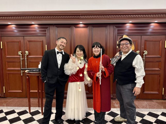 Baú de Música バウ・ヂ・ムジカ(pf.&vo. ぴろこ、gt.菅又-GONZO-健、fl.横山聡子、perc.小川岳史)は、小ホールにてお子様向けプログラムコンサート!
